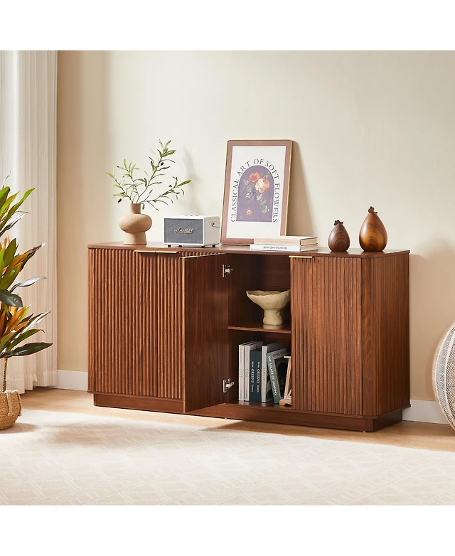 Gaomon Sideboard Buffet Storage Cabinet, 60in Large Modern Fluted Cupboard Coffee Bar Tv Console Cabinet with Adjustable Shelf for Kitchen