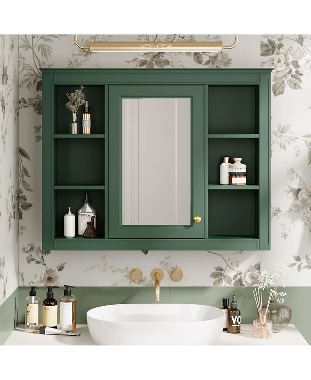 Casainc 30" x 28" Bathroom Medicine Cabinet with Mirror and 3 Open Shelves, Wall-Mounted (No Vanity)
