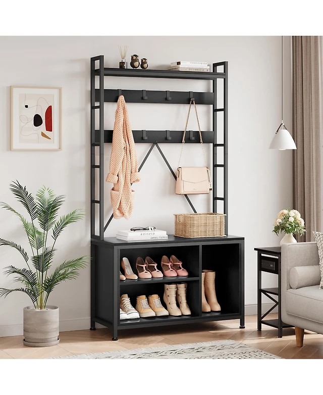 Slickblue Freestanding Coat Rack with 6 Hooks and 4 Storage Shelves
