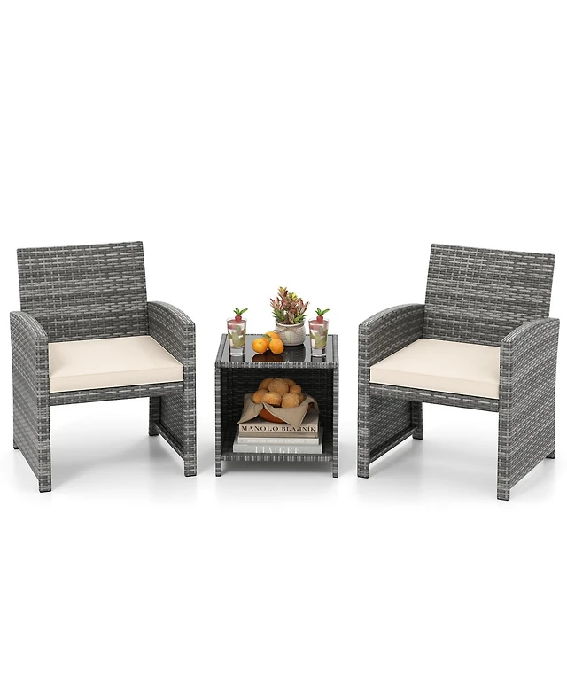 Sugfit 84 Gallon Patio Wicker Deck Box 3-Door Pe Rattan Storage Container with Removable Shelves-Brown