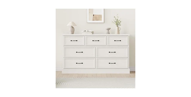 Gaomon White Rustic 6-Drawer Bedroom Dresser, 47.2" Wide Vintage Chest with Bar Handles