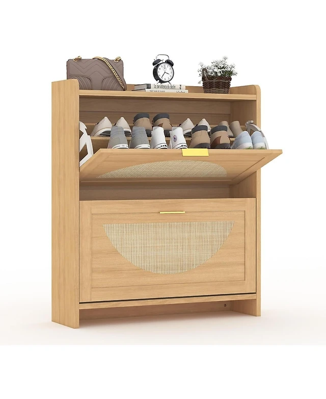 gaomon Shoe Cabinet Storage with 4 Flip Drawers, Rattan Narrow Shoe Rack Cabinet Storage for Entryway Hallway Living Room Closet, Nature Oak