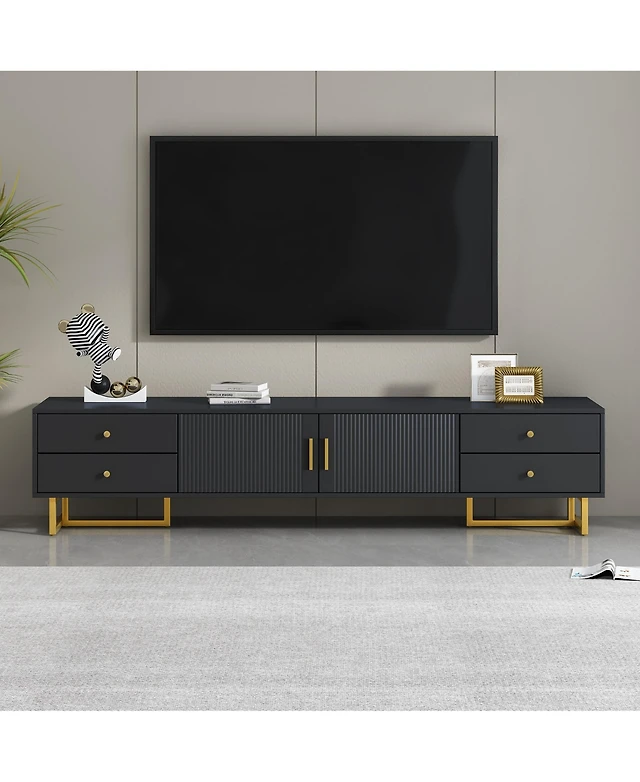 Mirrored Tv Stand for Tv up to 65 Inch with Spacious Tabletop and 2 Storage Cabinets