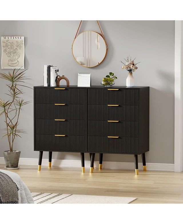 gaomon 8 Drawer Wood Dresser for Bedroom, Wooden Dressers with Gold Handle, Wood Closet Clothes Storage Organizer for Living Room