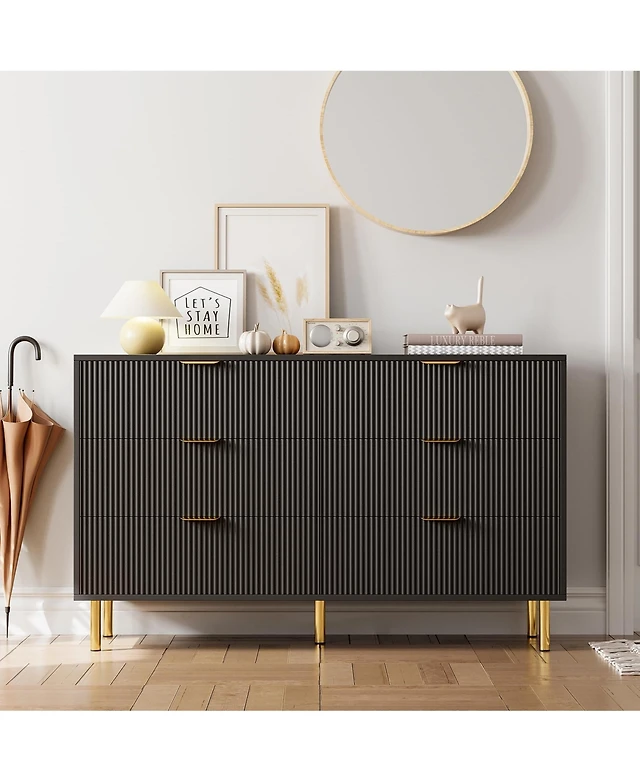 gaomon 53.5" 6-Drawer Dresser for Bedroom, Wide Modern Storage Chest with Metal Legs, Organizer Cabinet Entryway or Living Room