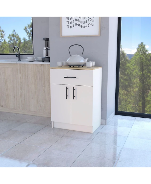 Sugift Drop-Leaf Kitchen Island Cart with Rubber Wood Top