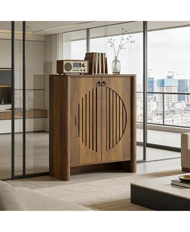 Streamdale Furniture 4-Door Walnut Cabinet for Living Room, Kitchen, Office