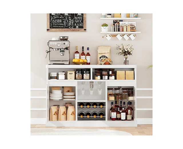 Kitchen Pantry Cabinet with Translucent Fluted Doors & Adjustable Shelf