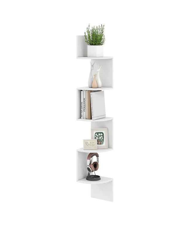 Sugift 5-Tier Corner Shelf Floating Bookshelf Wall Mounted Storage Organizer