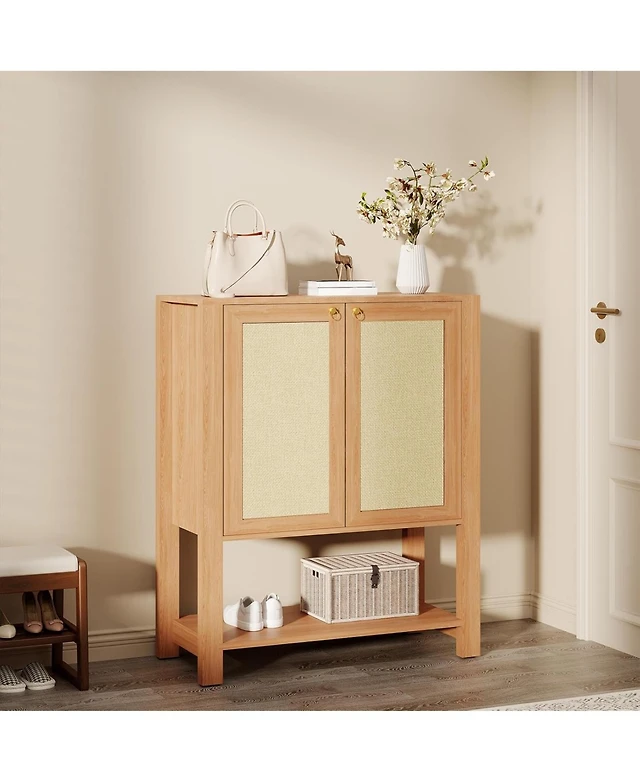 Homfan Rattan Storage Cabinet with 3 Flip Drawers, Freestanding Entry Way Shoe Storage Cabinet, Narrow Entrance Shoe Cabinets