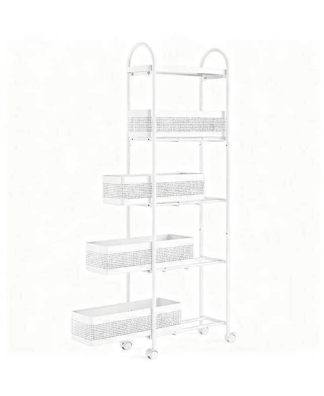 4-Tier Rolling Storage Cart Slim Kitchen Cart on Wheels with Open Shelves and Handle