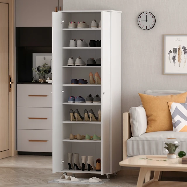 Slickblue 7-Tier Slim Wooden Vertical Shoe Rack for Entryway-White