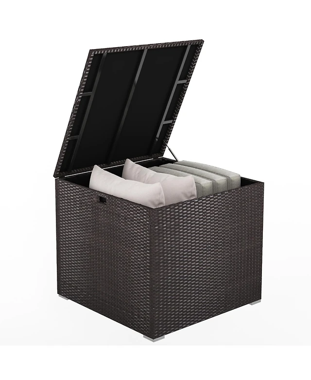 Sugift 72 Gallon Rattan Outdoor Storage Box with Zippered Liner and Solid Pneumatic Rod