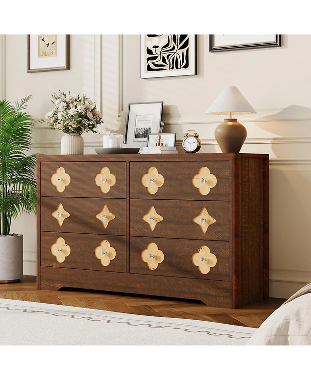 gaomon Takywep 6-Drawer Dresser for Bedroom – Farmhouse Modern Wooden Storage Chest with Metal Handles, Organizer Bedroom, Living R