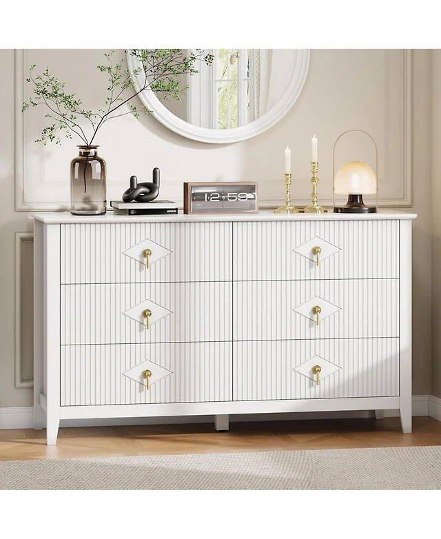 gaomon 53.5" 6-Drawer Dresser for Bedroom, Wide Modern Storage Chest with Metal Legs, Organizer Cabinet Entryway or Living Room