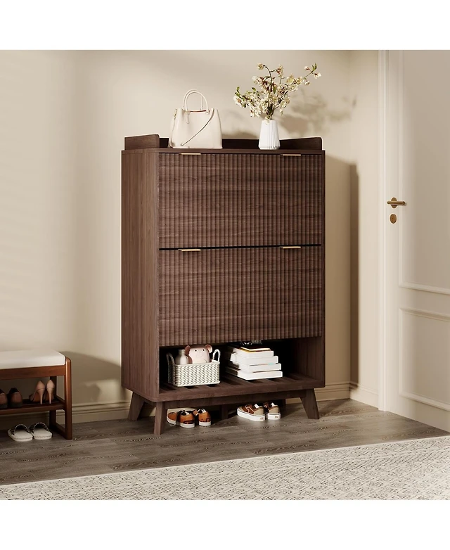 gaomon Shoe Storage Cabinet with 2 Flip Drawers & Top Drawer, Compact Shoe Organizer Cabinet for Entryway, Living Room