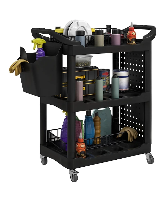 Homcom 3-Tier Rolling Tool Cart, Utility Cart with Side Shelf & Hook
