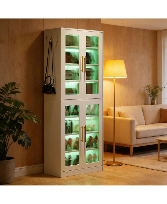 Rainsken 54.7'' Hall Tree, 4-in-1 Mdf Entryway Coat Rack with 4 Hooks, Shoe Cabinet and Mirrored Cabinet for Entrance, Living Room