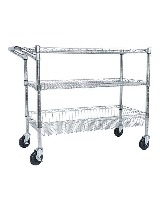 Rainsken Heavy Duty Rolling Utility Cart, 3 Tier Metal Kitchen Carts On Wheels with Handle Bar & Wire Shelf for Restaurant, Plant Display