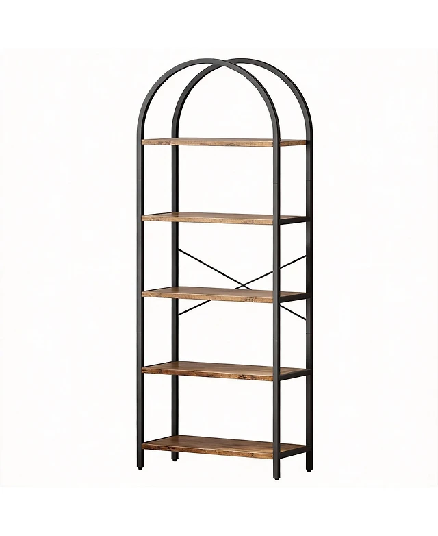 Yigii Arched Metal Bookshelf for Home Office and Living Room - 5 Shelves, Rustic Brown