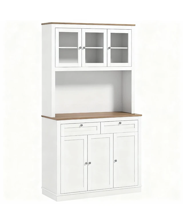 gaomon Kitchen Pantry Cabinet with Microwave Stand, Freestanding Hutch Cabinet with Buffet Cupboard, Tall Kitchen Cabinets with Adjustable Shelves for