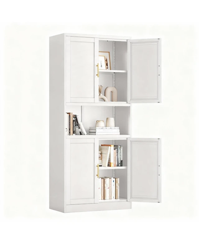 Yigii Heavy Gauge Steel Pantry Cabinet with 2 Adjustable Shelves and Open Compartment