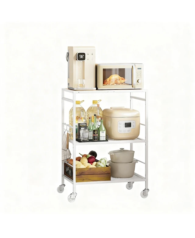 Tribesigns 4-Tier Slim Kitchen Rolling Cart with Wheels, Solid Wood Storage Cart