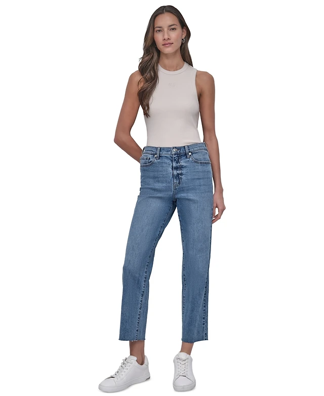 7 For All Mankind Women's Easy Straight Distressed Denim Jeans