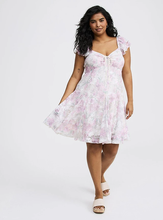 Third Charm Adelle Surplice Lace Hem Mini Dress