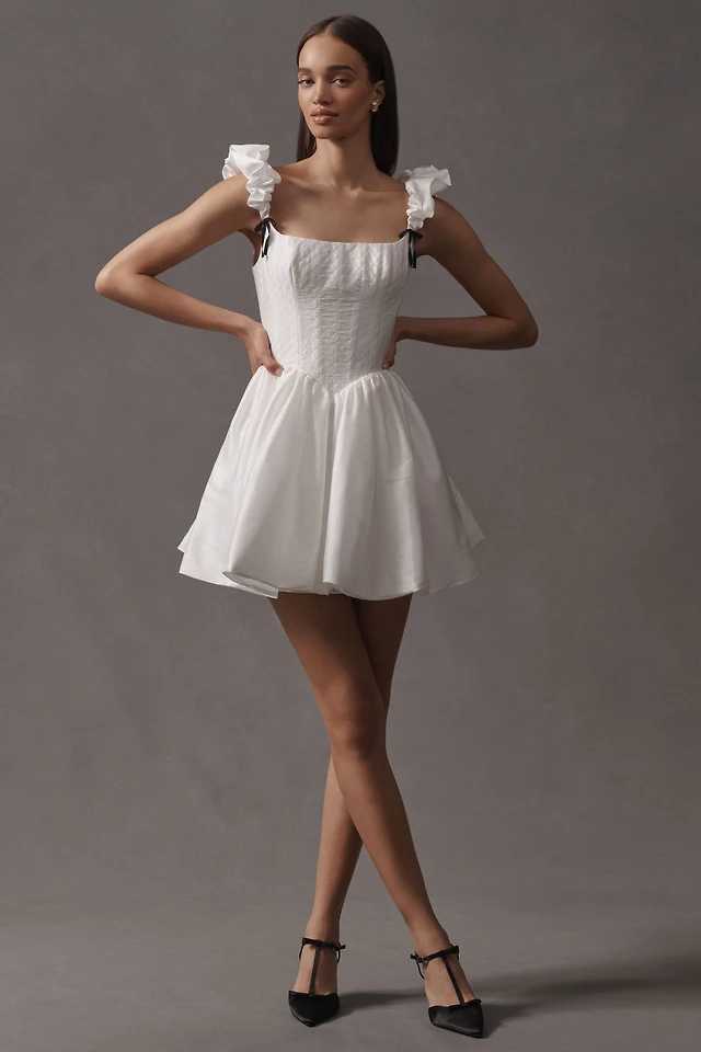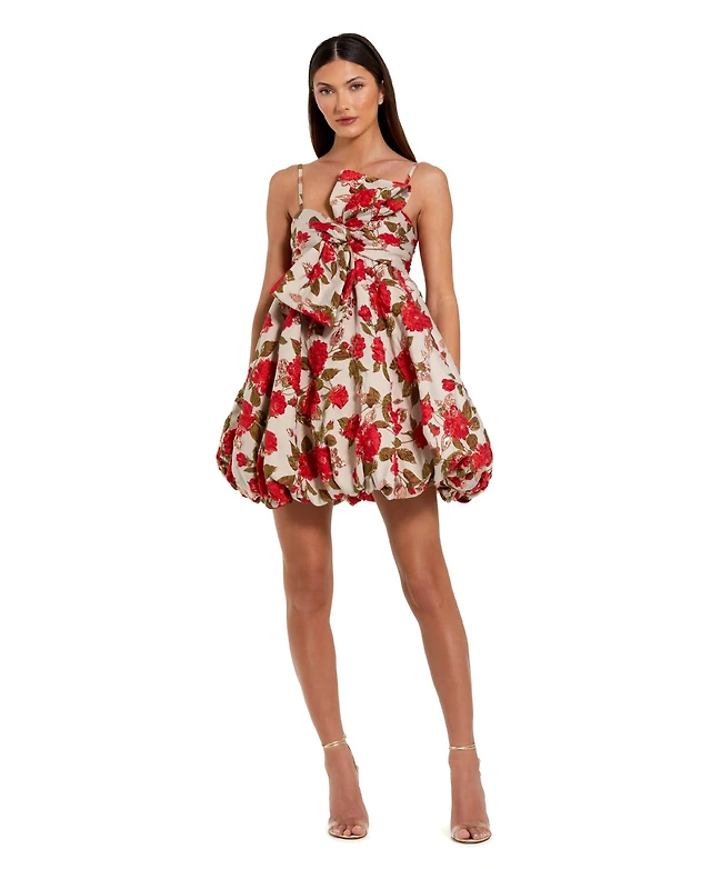 Modenaire Women's Spaghetti Strap Ruffled Trim Bow Accents Mini Dress