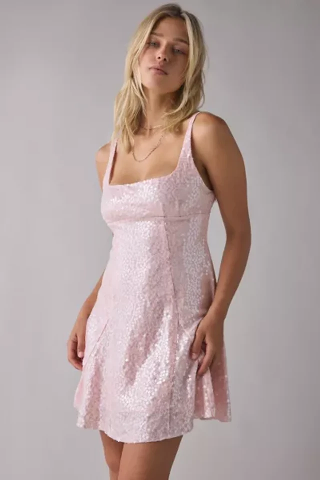 UO Liv Satin Fit-And-Flare Keyhole Open Back Mini Dress