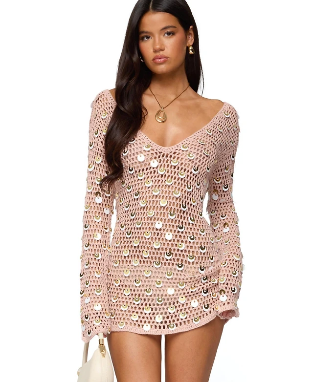 Edikted Women's Corea Sequin Crochet Mini Dress