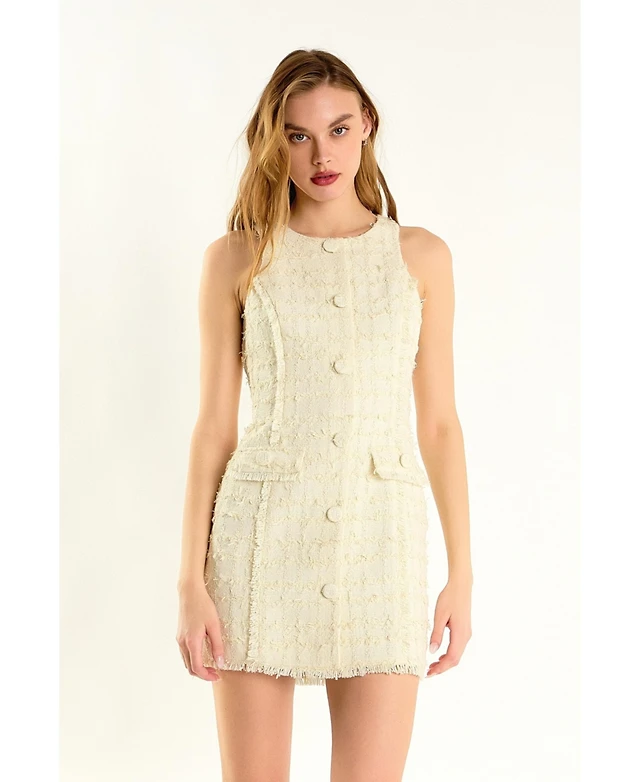Nocturne Women's Pearl Accessory Buttoned Mini Dress