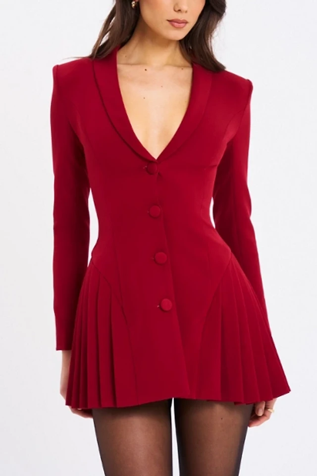 Lovaan Elly Pleated Wool Blend Mini Dress