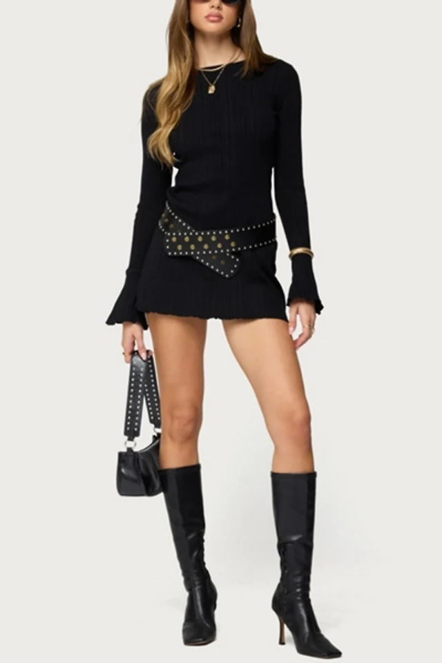 Renn Long-Sleeve Stitched Mini Sweater Dress