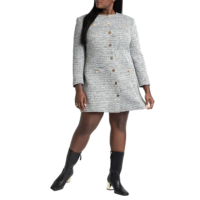 Buxom Couture Women's Plus Bubbled Denim Mini Dress