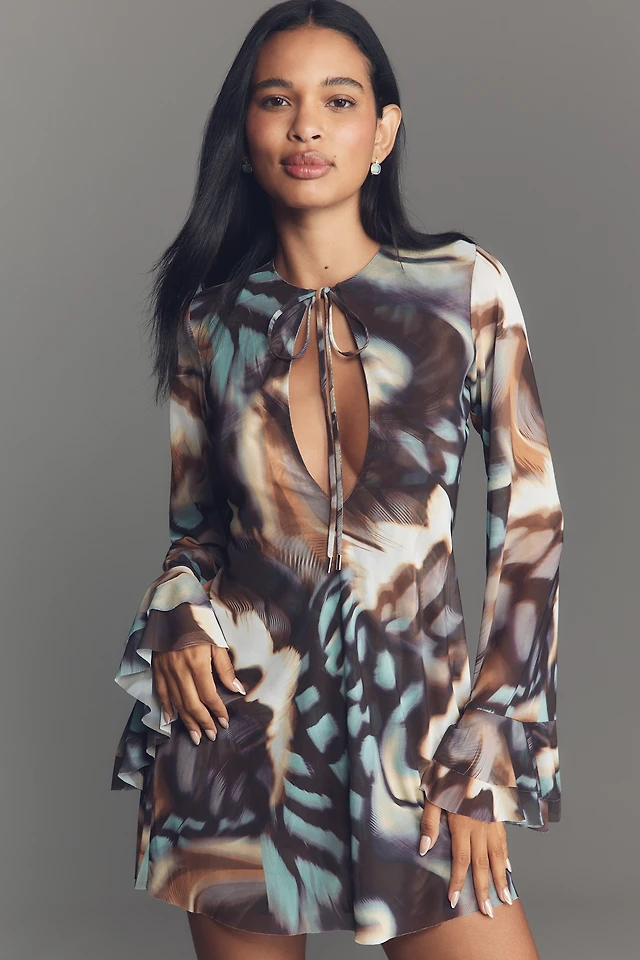 AFRM Kori Long-Sleeve Mesh Ruffled Mini Dress