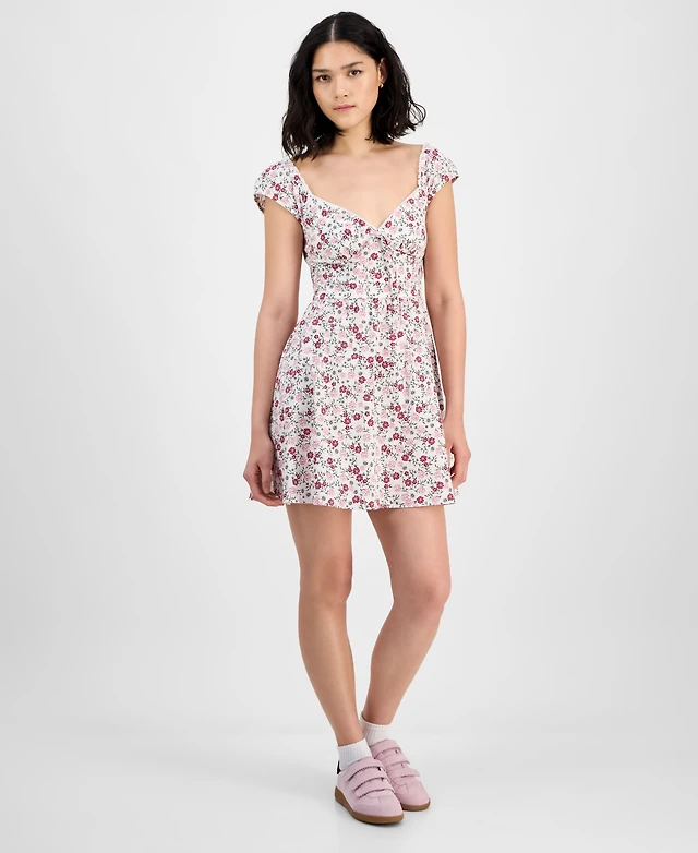 Farm Rio Long-Sleeve Keyhole Cutout Mini Dress