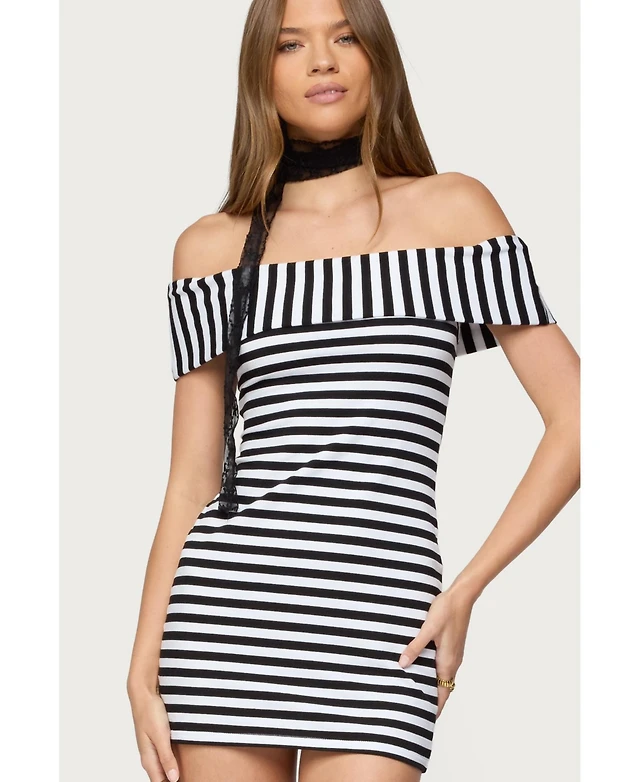 Edikted Women's Grommet Cowl Neck Halter Mini Dress