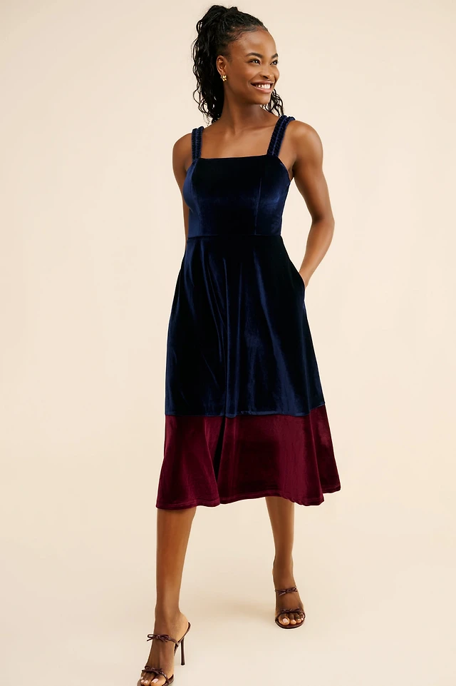 Poplin Polka Dot Tie Strap Smocked Fit and Flare Dress