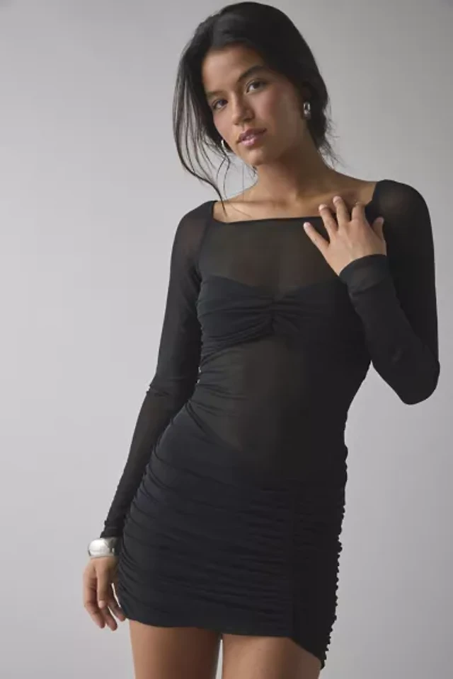 Boat Neck Long Sleeve Open Back Mini Sheath Dress