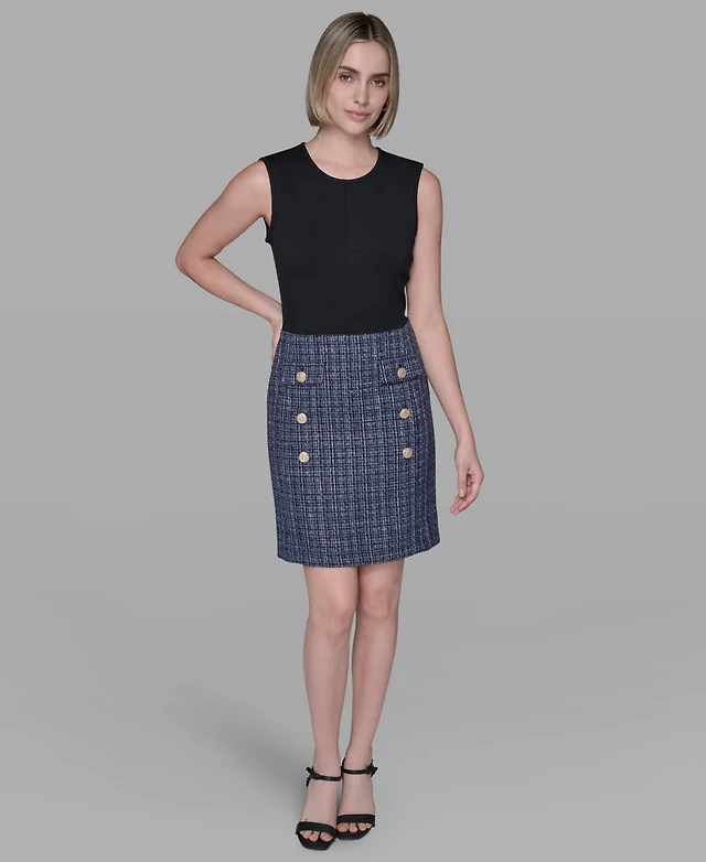 Crew Neck Sleeveless Seamed Mini Fit and Flare Dress