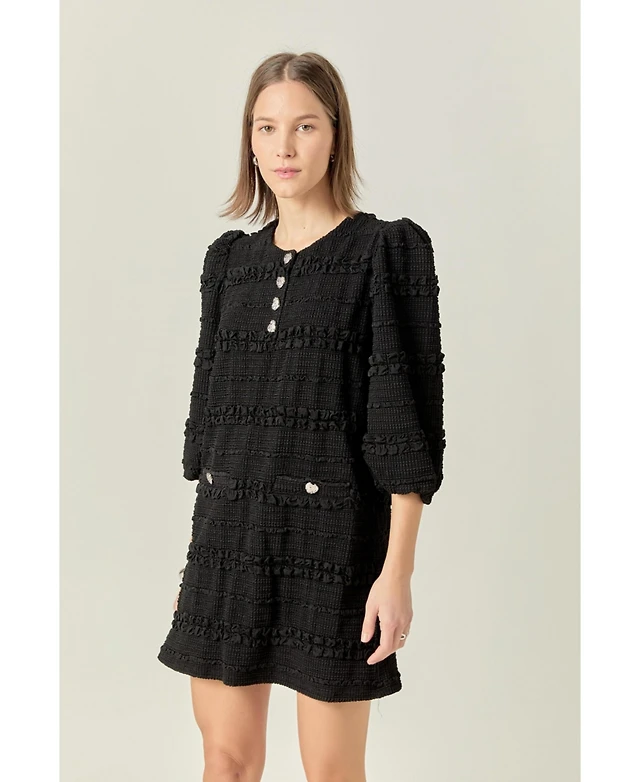 Celandine Bead-Trim Knit Long-Sleeve Mini Shift Dress
