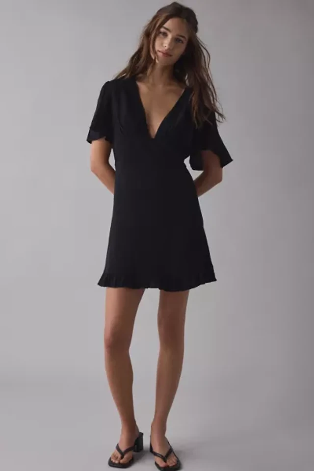 BHLDN Chiffon Off-Shoulder Long-Sleeve Rosette Mini Dress