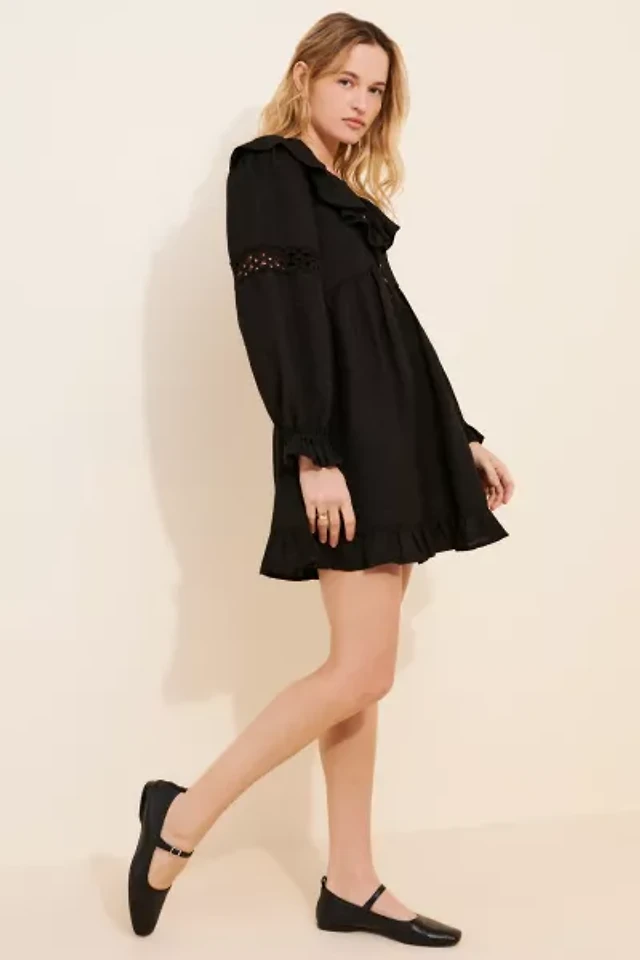 Dizzy Lizzy Ruffle Linen Blend Long Sleeve Mini Dress