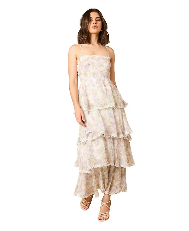 Dessy Collection Women's Marguerite Floral Corset Maxi Dress with Ruffle Straps & Skirt