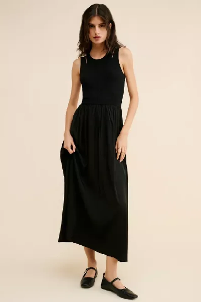 AFRM Jennan Ruched Sheer Mesh Tank Maxi Dress