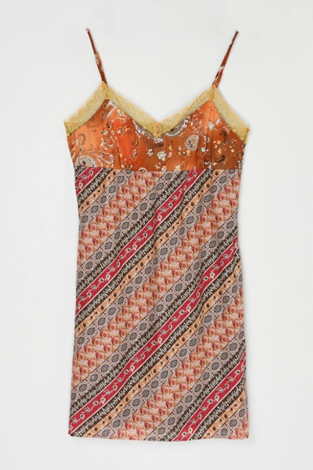 Vintage Y2k Earthtones Printed Mini Dress with Tie
