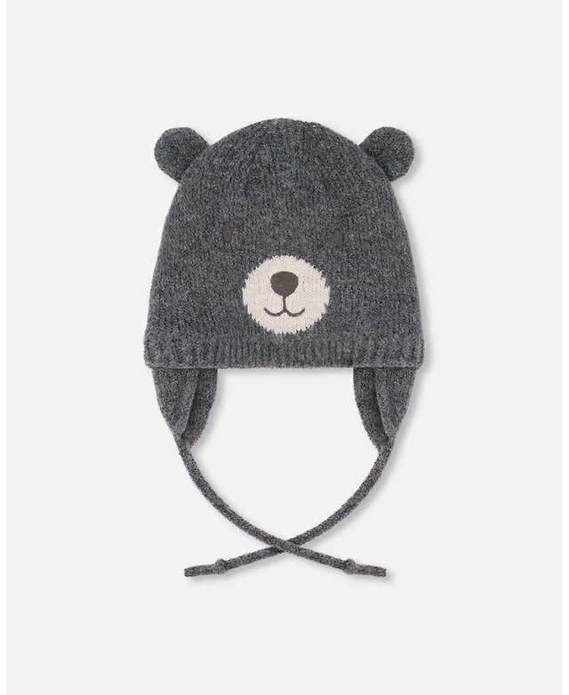 Deux par Baby Boy Lined Knit Hat with Ears Gray