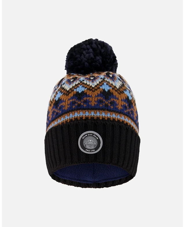 Deux par Boy Winter Knit Hat with Pompom and Lining Black Blue - Toddler|Child
